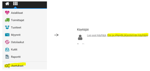 Asetukset > Etsi ja ylläpidä järjstelmän käyttäjiä:**