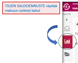 Tallenna. Lasku siirtyy Tilien saldoennuste -välilehdelle odottamaan siirtoa pankkiin.