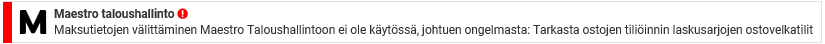 "Maskutietojen välittäminen Maestro Taloushallintoon ei ole käytössä, johtuen ongelmasta: Tarkasta ostojen tiliöinnin laskusarjojen ostovelkatilit"