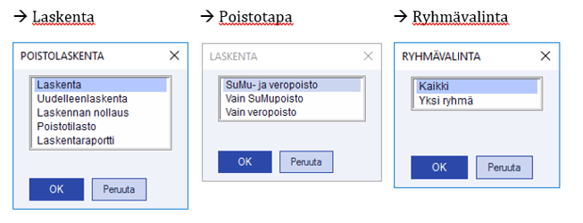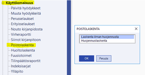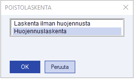 Tämän jälkeen suoritetaan poistolaskenta huojennuslaskennan osalta. Huojennuslaskenta suorittaa huojennuslakiin perustuvien hyödykkeiden poistolaskennan.