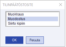 1) Tilinpäätöstositteen muodostus ja muokkaus ja siirto kirjanpitoon