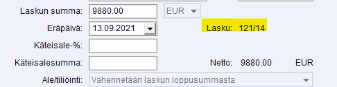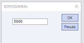 Kopiosumma-kenttään merkitään summa, joka laskusta halutaan maksaa, esim. 5000 euroa.