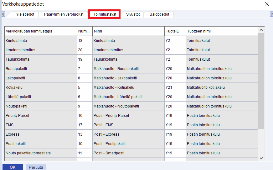 Kun verkkokaupassa tehdään muutoksia toimitustapoihin niin tulee muistaa käydä myös tarkistamassa, että toimitustavat täsmää Maestrossa kohdasta Rekisterit - > Verkkokauppatiedot - > Toimitustavat - välilehti.