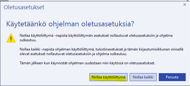 Avautuvasta ikkunasta valitaan "nollaa käyttöliittymä":