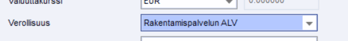 - Verollisuus-valikossa uusi vaihtoehto Rakentamispalvelun ALV