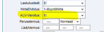 - Vähennyskelvottoman ostotilin määritys alv:n osalta on oltava Myynnin ALV-ryhmä.