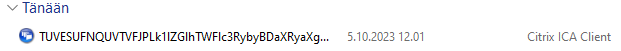 Klikkaus hiiren kakkospainikkeella -> Avaa sovelluksessa -> Valitse toinen sovellus -> Valitse sovellus tietokoneessa → Hae C:\Program Files (x86)\Citrix\ICA Client\wfcrun32.exe.