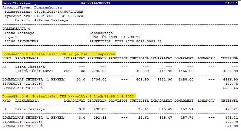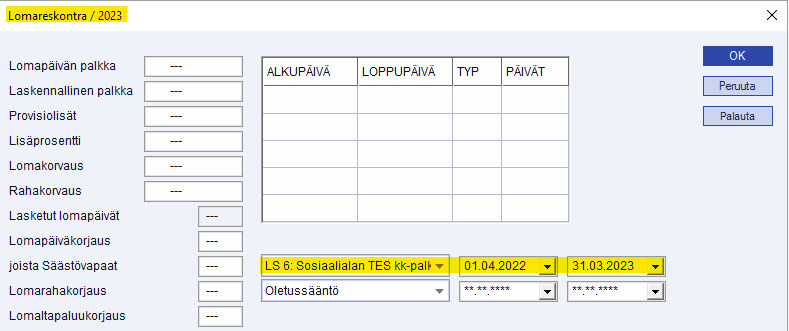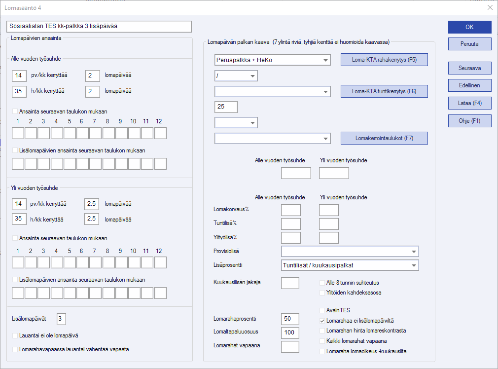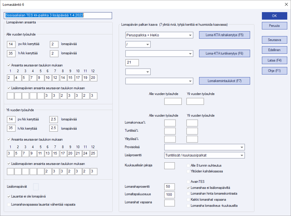 Lomaa maksettaessa ohjelma osaa maksaa lomapalkan annetun lomavuoden perusteella oikean säännön mukaisesti.