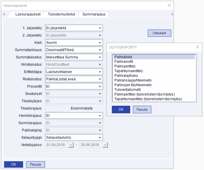 Erillisilmoitus mitätöidään Maestrosta hakemalla palkkalistalta mitätöitävä sivukululaskelma ja palkkatietoilmoitus hakemalla palkkalistalta mitätöitävä palkkaerittely. Palkkalista saadaan ajettua Selaukset > Jakson palkat kautta, valitsemalla Tulostemuotoilut-välilehdellä Oletukset > Palkkalista.