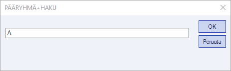 Syötä ensimmäiseksi pääryhmän kirjain, esim. A ja siirry OK:lla eteenpäin, kunnes pääset syöttämään uuden tuotteen Uusi-valinnalla.