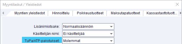 Siirry Tiedosto > Myyntilaskut > Yleistiedot > Ohjelmakohtaiset tiedot.