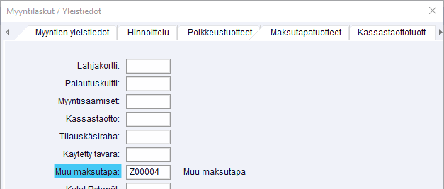 Siirry Tiedosto > Myyntilaskut > Yleistiedot > Myyntien yleistiedot.