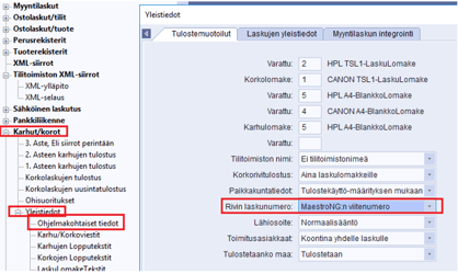 Karhut/korot - Yleistiedot - Ohjelmakohtaiset tiedot ==> Rivin laskunumero: MaestroNG:n viitenumero