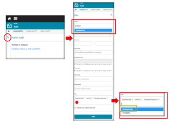 - Klikataan Kuitit -näkymässä vasemmassa reunassa olevaa "suurennuslasikuvaketta" ==> aukeaa hakulomake