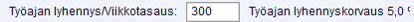 Tiedosto – Asetukset – Palkat – Yleistiedot – Poikkeus-palkkalajit – Työajan lyhennys/Viikkotasaus