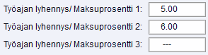 Tiedosto – Asetukset – Palkat – Yleistiedot – Kalenterivuositiedot – Työajan lyhennys/Maksuprosentti