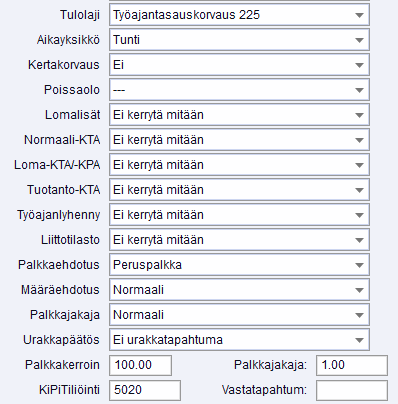 Palkkalajeille, joista maksetaan työajanlyhennyskorvausta, määritellään Työajanlyhenny-kenttään viikkosääntö mukaan. Alla olevat vaihtoehdot ovat siis laskennassa mukana.