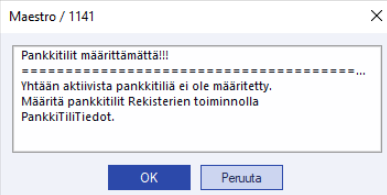 Muuta Tiedosto > Pankkiliikenne > Rekisterit > Yleistiedot -ikkunassa Valinnainen pankki: Ei käytössä.