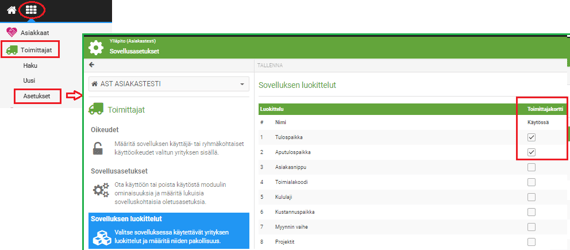 Luokittelut määritellään toimittajakorteille käyttöön: