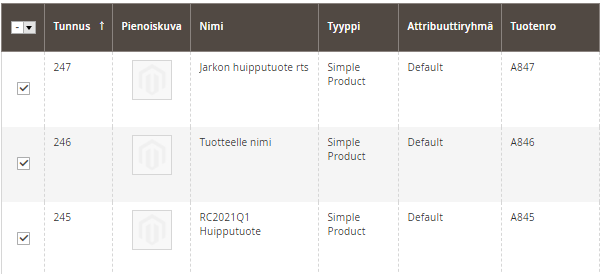 Hae haluamasi tuotteet kohdasta Katalogi->tuotteet ja täppää ne valituksi.