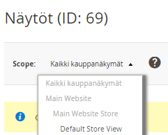 Jos ylläolevat on jo kunnossa eikä kategoria silti näy kaupassa. Tarkista vielä kauppanäkymäkohtaiset asetukset. Eli kyseisestä kategoriasta valitse kohdasta Scope: Kaikki kauppanäkymät alta esim. Default store view (mikäli teidän kauppanäkymä on tuolla nimellä. Voi olla myös Suomi tai muu vastaava).