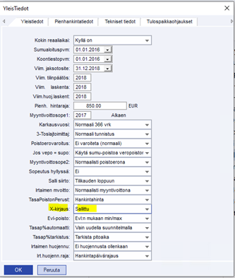 Kytketään päälle (ts. annetaan olla oletuksena) yleistietoasetus X-kirjaus = Sallittu.