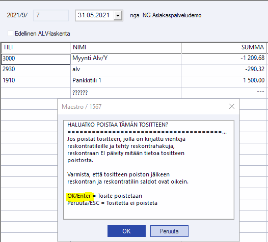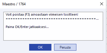 Ohjelma kysyy, haluatko poistaa tositteen. Hyväksy ikkuna painamalla OK/Enter.