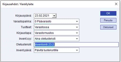 - Invent. päivä, halutaanko inventointipäivä päivittää tuotekorteille