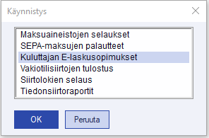 Listauksen kuluttaja asiakkaiden e-laskusopimuksista saa helpoiten Pankit-Pankkiliikenne-Aputulosteet-Kuluttajan e-laskusopimukset.
