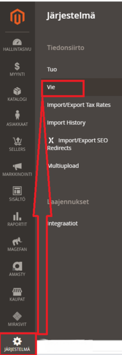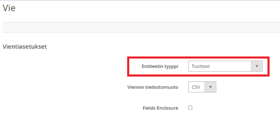 Vientiasetuksista valitaan Entiteetin tyyppi: Tuotteet