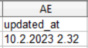 Csv:stä löytyy alla oleva sarake, joka kertoo milloin tuote on päivitetty verkkokauppaan.