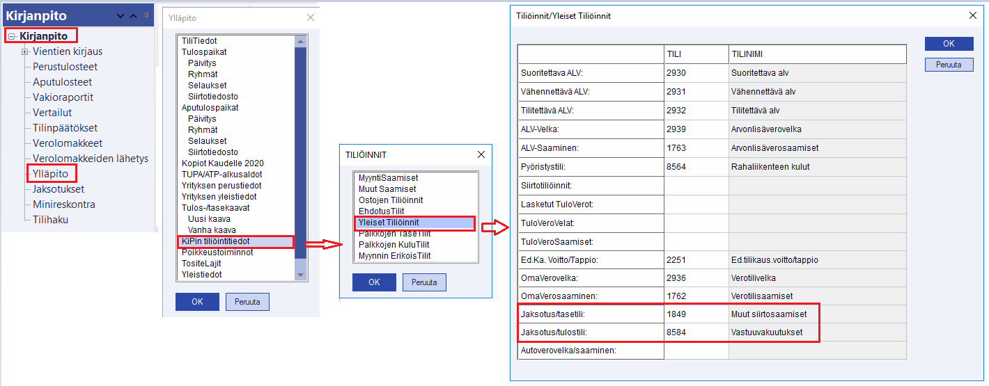 Kirjanpito - Ylläpito - Kipin tiliöintiedot - Yleiset Tiliöinnit
