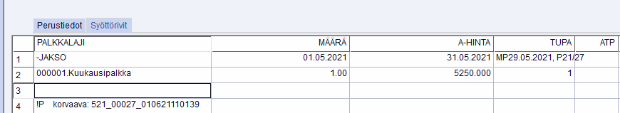 Muista tehdä ennen korvaavaa ilmoitusta erillinen hyvityspalkkanauha. Tästä lisää seuraavassa ohjeessa: Hyvityspalkkanauhan kirjaus.