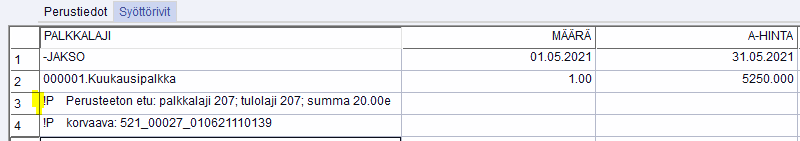 !P Perusteeton etu: palkkalaji 207; tulolaji 207; summa 20.00e
