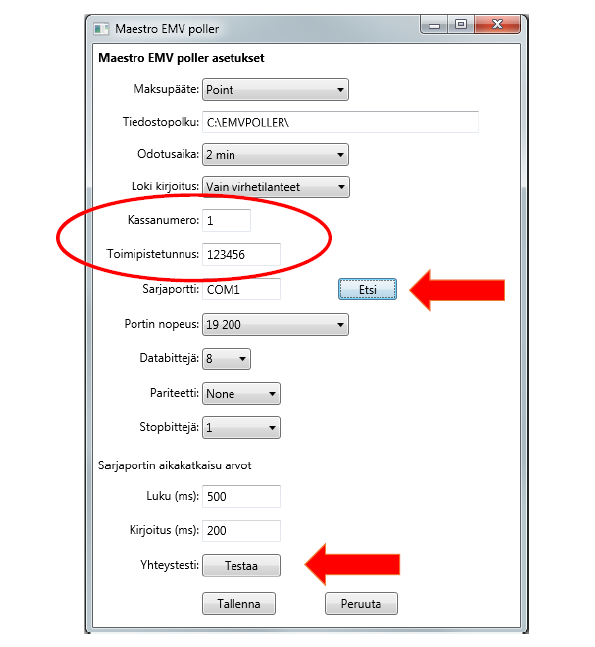 Määritä Kassanumero sekä Toimipistetunnus (Location-id).