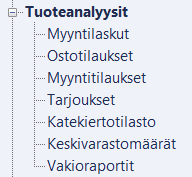 Jos Tuoteanalyysit ovat käytössänne, ne löytyvät kohdasta.