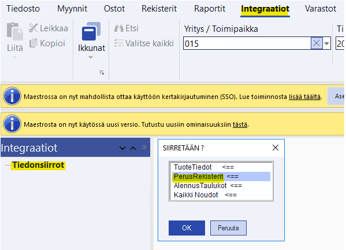 - Integraatiot -> Tiedonsiirrot -> Perusrekisterit: