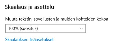 Näytön skaalausprosenttien arvot voi tarkastaa painamalla hiiren "kakkospainikkeella" tyhjän näytön päällä ja valitsemalla Näytön asetukset. Täältä löytyy kunkin näytön kohdalta kohta Skaalaus ja asettelu. Tässä kohtaa tulee kaikissa käytössä olevissa näytöissä olla sama prosenttiarvo. Arvo voi olla muutakin kuin 100%, mutta se on oltava sama.