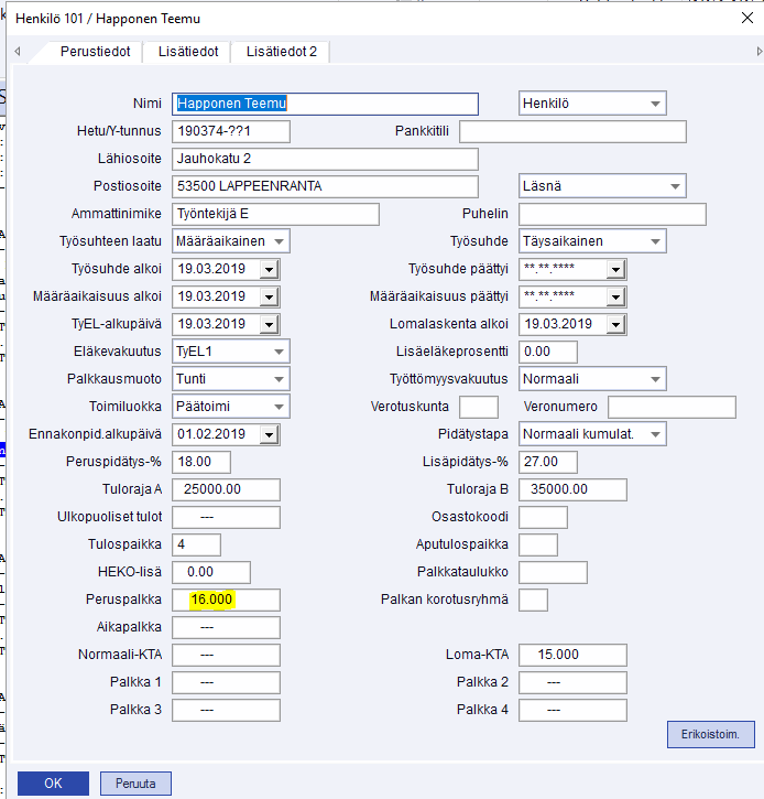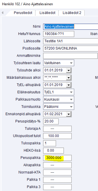 Tuntipalkkaisten kohdalla voi palkanlaskija itse määrittää mihin laskenta perustuu (palkkalajikortilla palkkaehdotus -kentässä esim. kta tai peruspalkka).