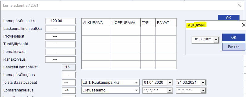 Valitse lomarahavapaajakson alkupäivä ja loppupäivä:
