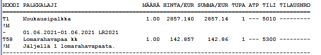 Lomarahavapaalle voidaan laskettaa hinta palkkalajikortin määritysten mukaisesti.