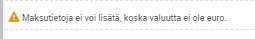 NGmaksatuksessa pystyy maksamaan vain laskuja, joiden valuutta on EUR.