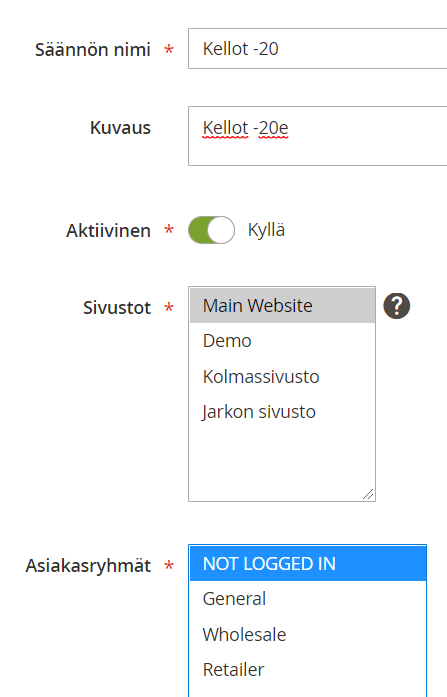 Tuoteluettelon hintasäännön tekeminen verkkokaupassa