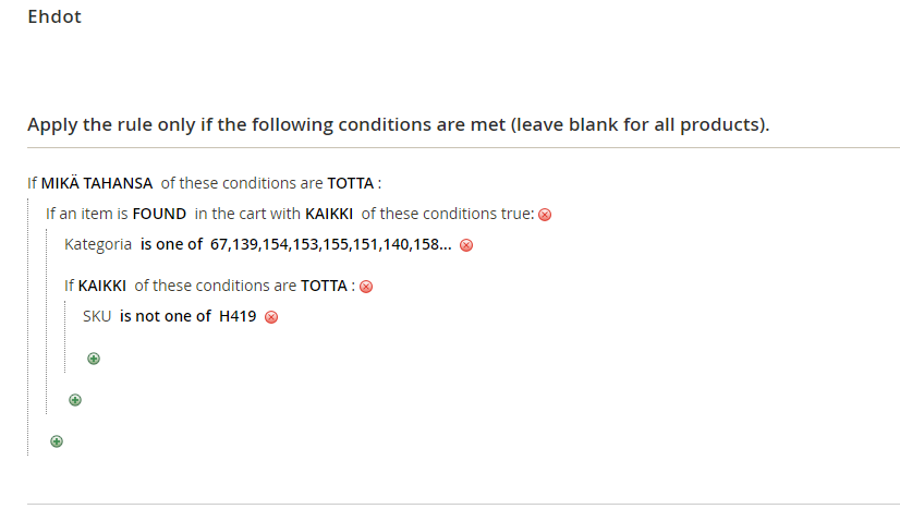 Saadaksesi alennuksen toimimaan oikein niin tee säännöt allaolevien kuvien mukaisesti.