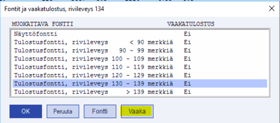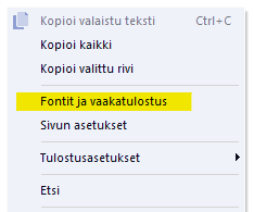 Fontti-painikkeen takaa voit tarvittaessa pienentää/suurentaa tulosteen fonttikokoa.