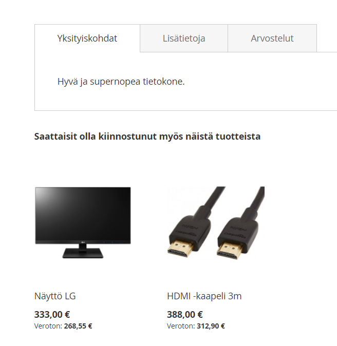 Liittyvät tuotteet eli releated products