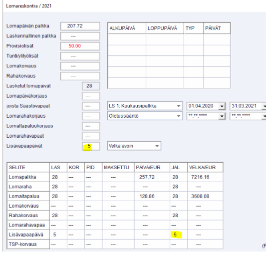 Palkat/Lisävapaapäivien käsittely