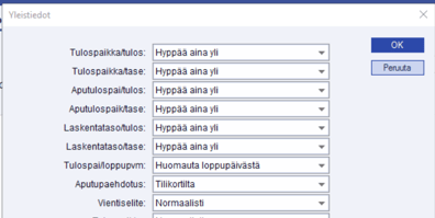 Miksi uuden tositteen/vientien kirjauksessa on pakko täyttää tulospaikka tai aputulospaikka, vaikka kirjanpidon yleistiedoissa määritellään Hyppää aina yli?