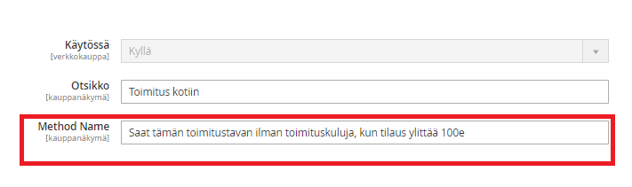 Toimitustavan tekstissä saa olla maksimissaan 255 merkkiä. Jos toimitustavan nimessä halutaan informoida asiakasta, tulisi tässä tapauksessa merkkimäärä vähentää niin tilaaminen onnistuu.