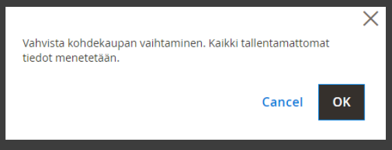Kauppanäkymän valinnan jälkeen kysyy vielä varmistuksen näkymän vaihtamisesta. Mikäli muutokset on tallennettu ennen kauppanäkymän vaihtoa voi tähän valita ok.